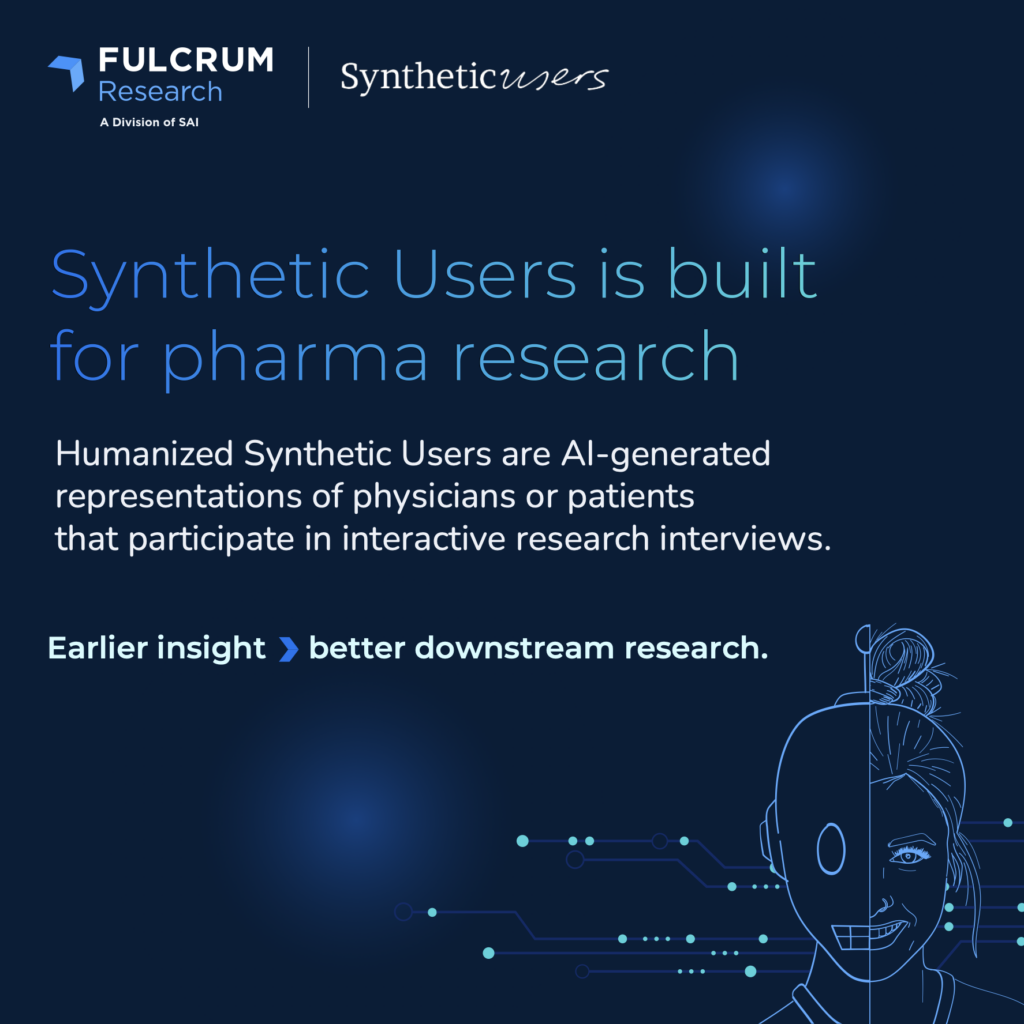 Synthetic Users are AI-generated representations of physicians or patients that participate in interactive research interviews. These Users respond naturally to moderator questions, provide nuanced feedback and allow for follow-up probing, delivering powerful, scalable insights that mirror real-world interactions with 92% parity with human responses. The platform integrates multiple LLMs, life science sources, and psychometric data about human personality types so that personas mimic real human emotion, behavior, knowledge, and attitudes