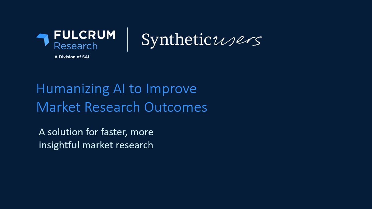 To close this gap, Fulcrum Research Group is excited to announce our partnership with Synthetic Users – synthetic data that is “humanized” to go beyond just “smart” AI.