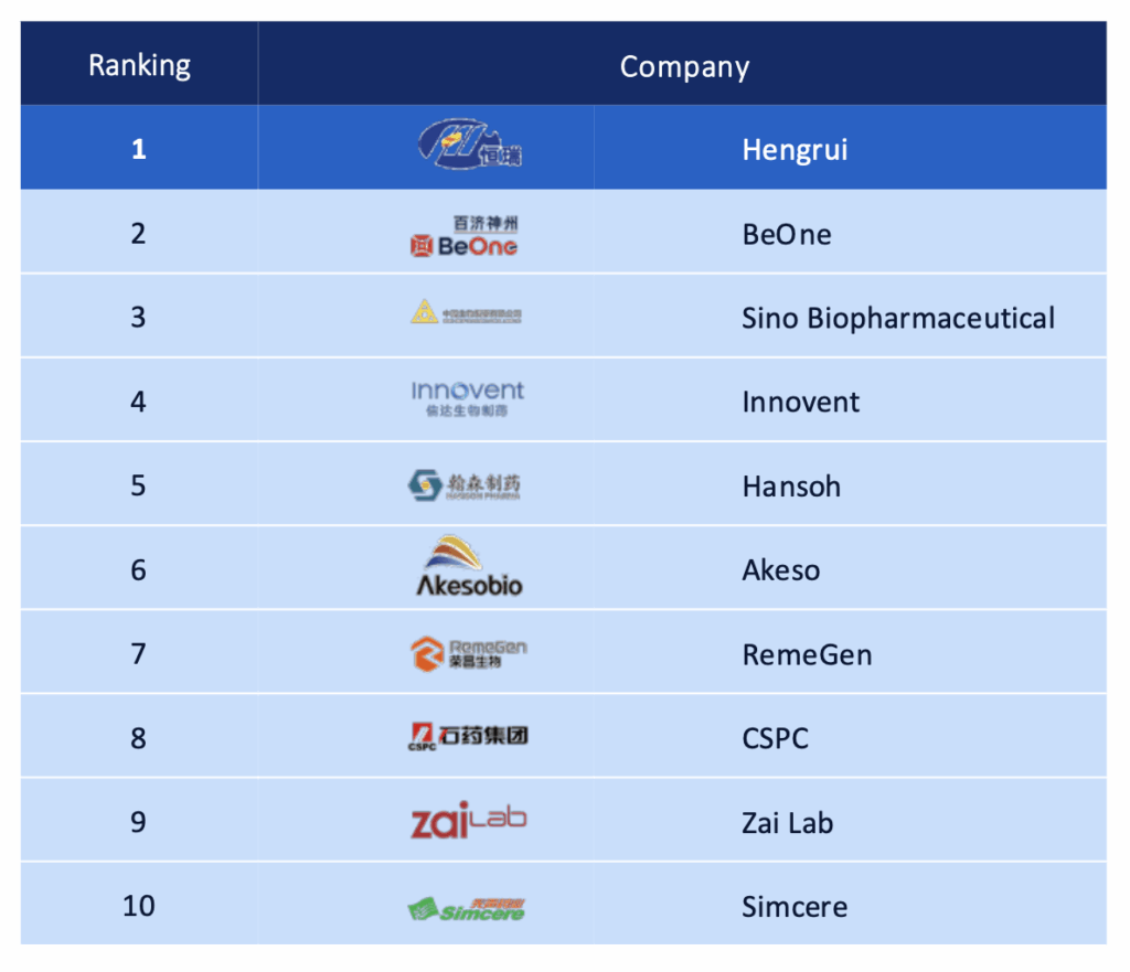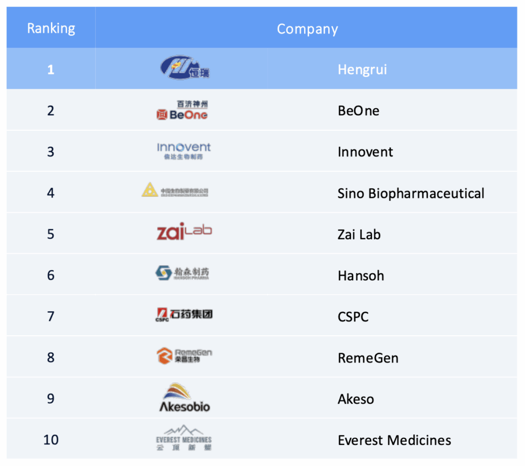 The results of China PIII, launched in Shanghai today, show Hengrui take the top spot in both Innovation and Invention and BeOne in second place for both indices – the top 10 are listed below: